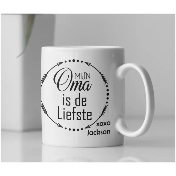 Home » Winkel » Cadeau ideeen » Mok laten bedrukken » Mok Mijn oma is de liefste