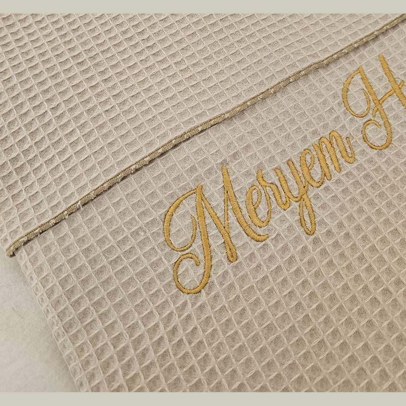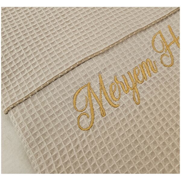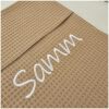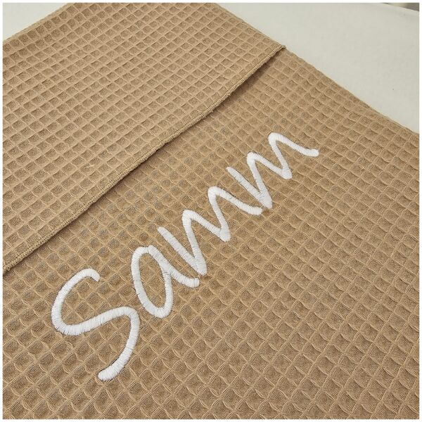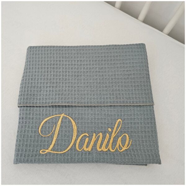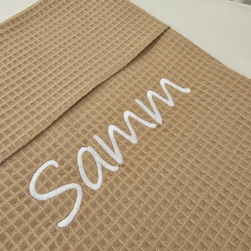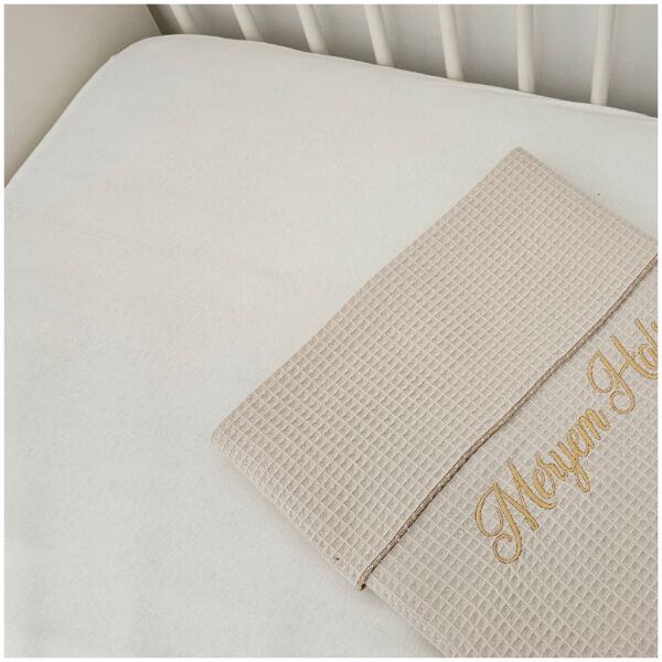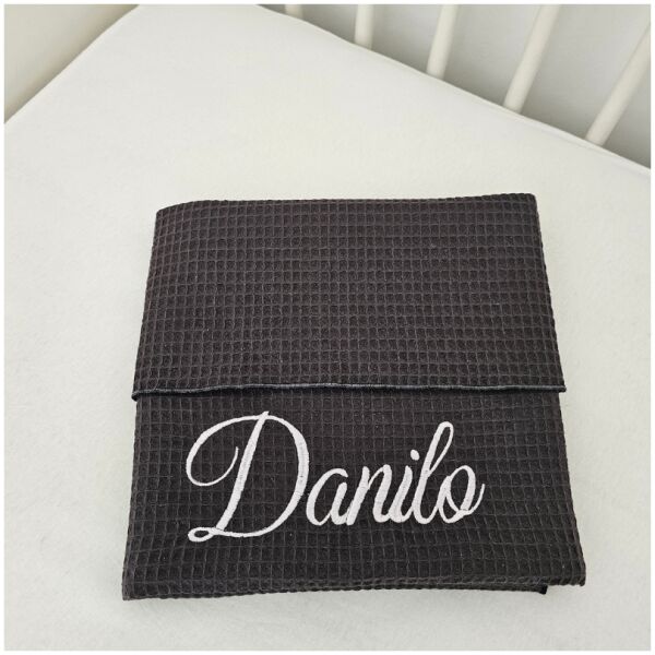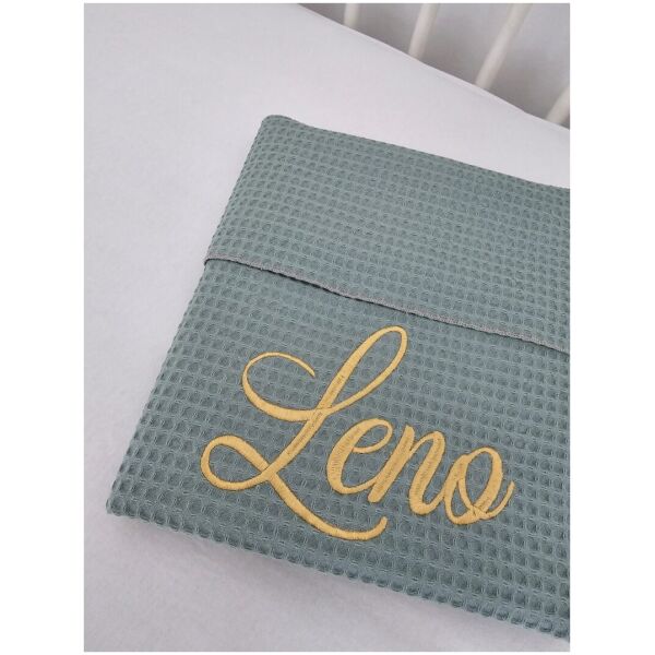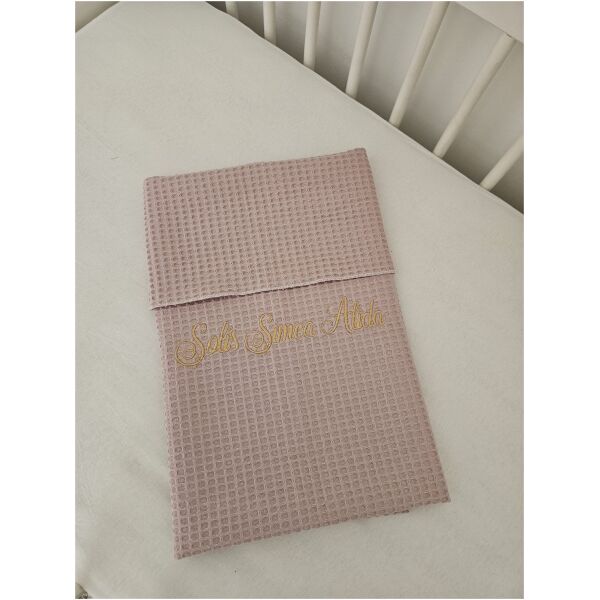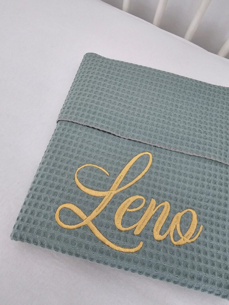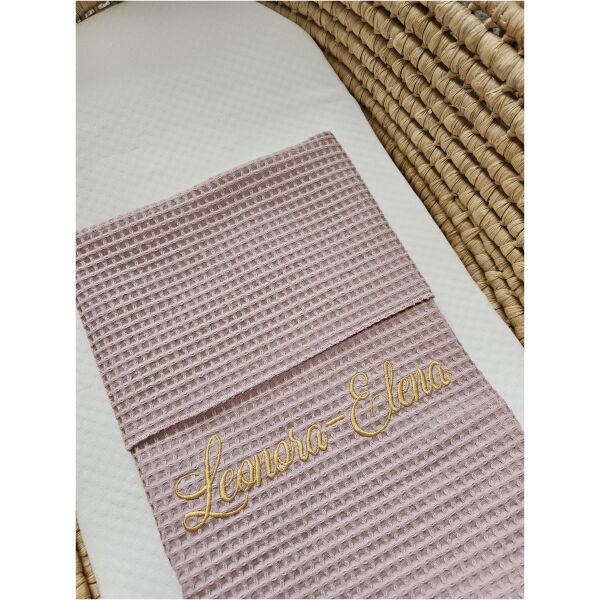 Licht en luchtig wafelkatoen, geborduurd met naam naar keuze. Een uniek en stijlvol kraam cadeau!