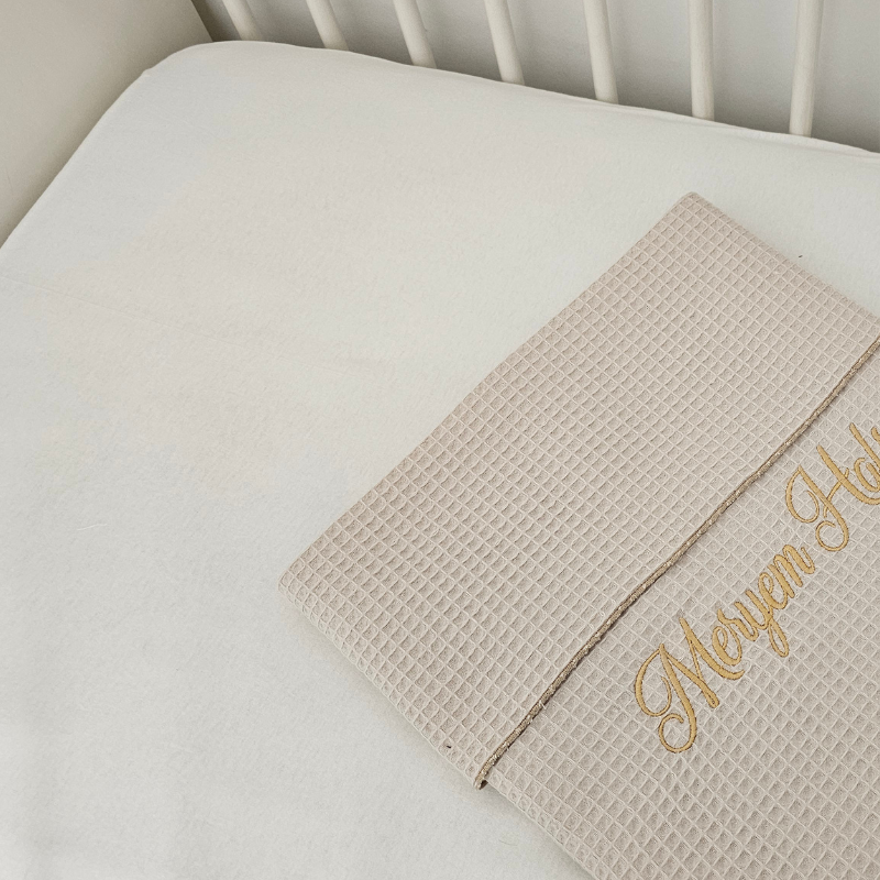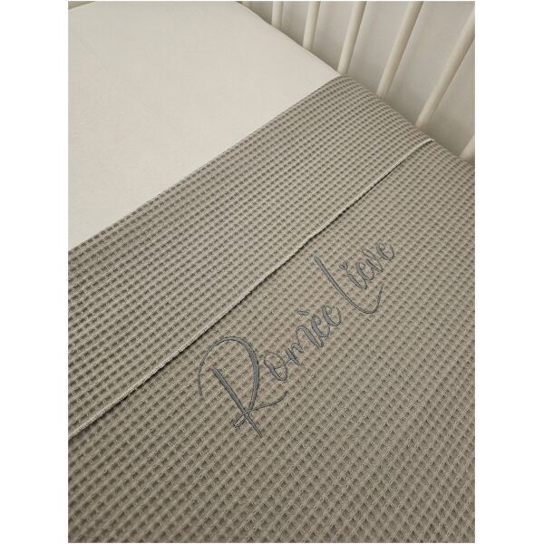 Laat jouw kleintje heerlijk slapen onder een persoonlijk dekentje van wafelkatoen. Perfect voor in de wieg, box of onderweg. Gemaakt met liefde, geborduurd met jouw gekozen naam.